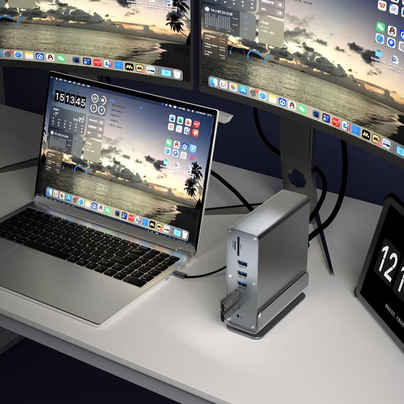 Se está cansado de lidar com adaptadores, esta dock simplifica tudo: mais monitores, portas mais rápidas, internet com fio, acesso a cartões e carregamento através de um hub compacto. O suporte integrado e o corpo metálico fazem com que pareça uma verdadeira atualização de desktop, e não um dongle frágil, enquanto as saídas USB 3.2 e 4K@60Hz mantêm o desempenho pronto para fluxos de trabalho modernos.