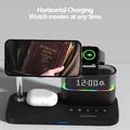 Estação de carregamento magnético sem fios 5 em 1 com luz nocturna e despertador - iPhone, AirPods, Apple Watch - 15W