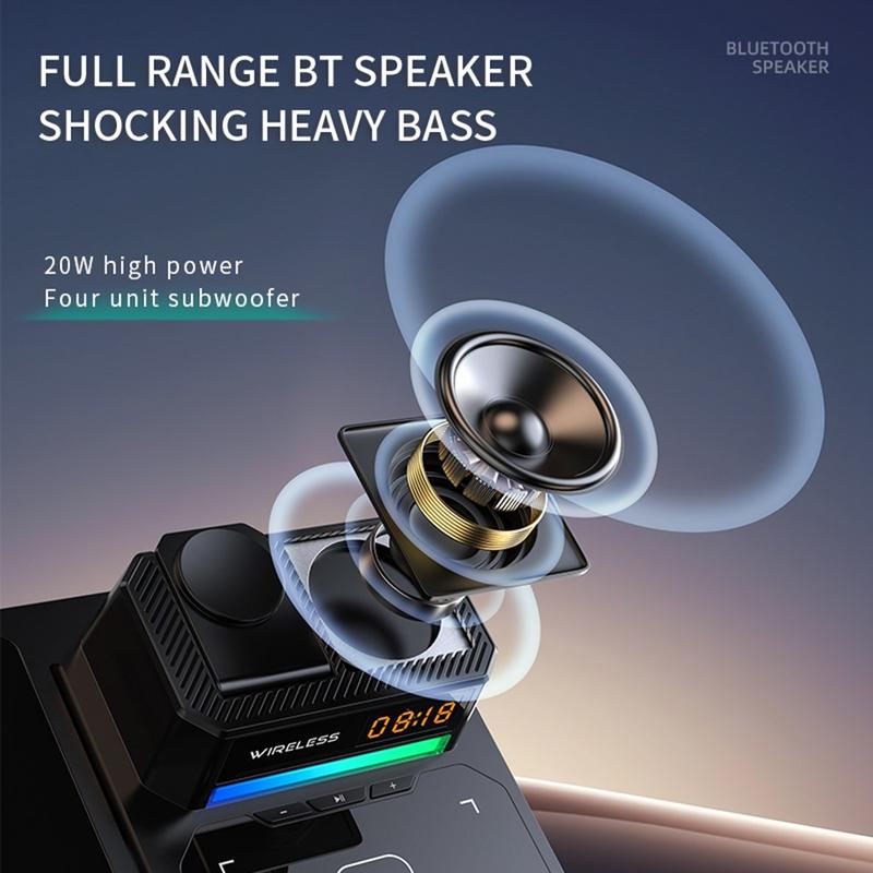 Estação de carregamento sem fios C18 6 em 1 com altifalante Bluetooth e luz RGB