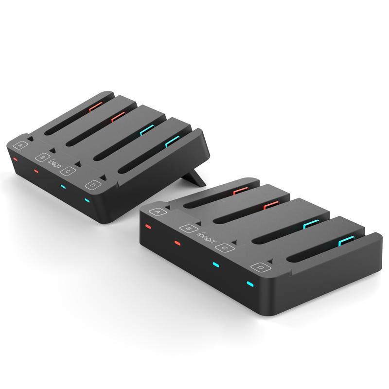 - Carregamento de vários dispositivos: Inclui oito slots de carregamento totais (4 × Nintendo Switch 1 e 4 × Nintendo Switch 2) para compatibilidade total.