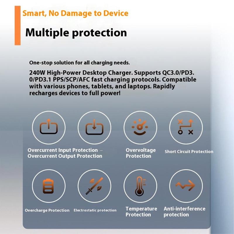 - Potência total maciça de 240W - Oferece carregamento rápido simultâneo para vários dispositivos de alta demanda.