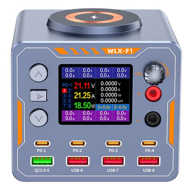 O WLX-F1 combina carregamento de alta potência, conveniência sem fio e testes eletrônicos de precisão em uma estação compacta. Com compatibilidade universal, monitorização de segurança em tempo real e extensas opções de portas, é uma excelente atualização para utilizadores de tecnologia, reparadores de bricolage e profissionais que precisam de uma gestão de energia fiável para vários dispositivos.