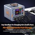 O ecrã a cores HD permite a monitorização em tempo real da tensão e da corrente com uma precisão de 0,001 V / 0,001 A, garantindo um carregamento seguro, preciso e controlado. O chip inteligente incorporado identifica automaticamente os dispositivos ligados e ajusta o fornecimento de energia para um desempenho de carregamento ótimo.