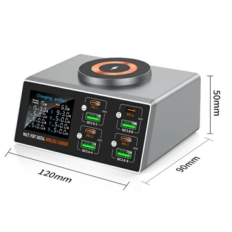 - Hub de carregamento 9 em 1 com 8 portas com fios + 1 carregador magnético sem fios