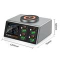 A estação de carregamento de secretária WLX-X9S 140W é um poderoso hub de carregamento 9 em 1 concebido para lidar com todos os seus dispositivos ao mesmo tempo. Com oito portas com fios e uma base de carregamento magnética sem fios, substitui vários adaptadores por uma única solução de secretária compacta.