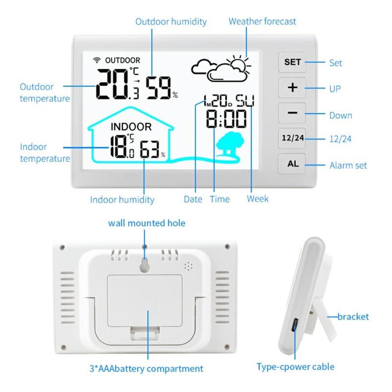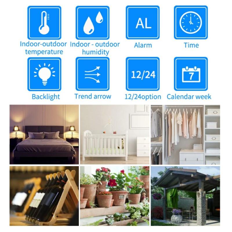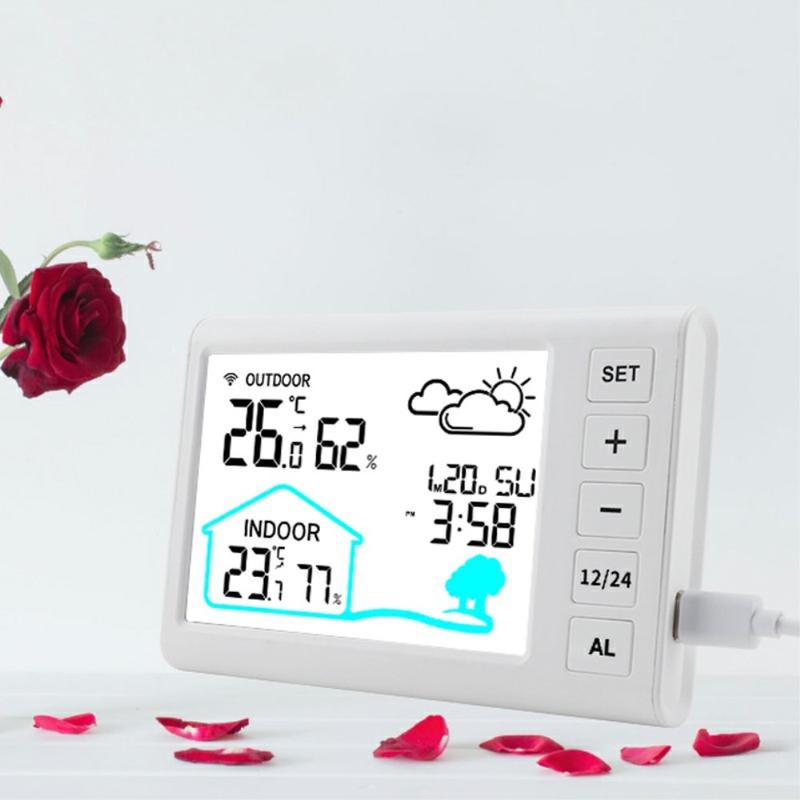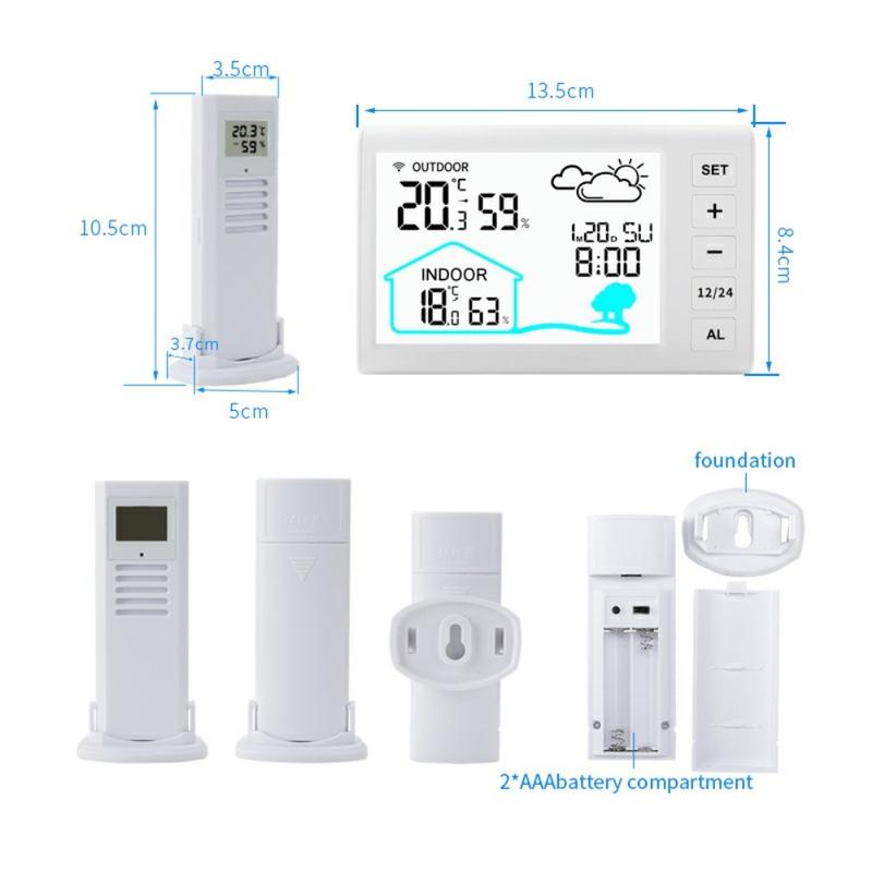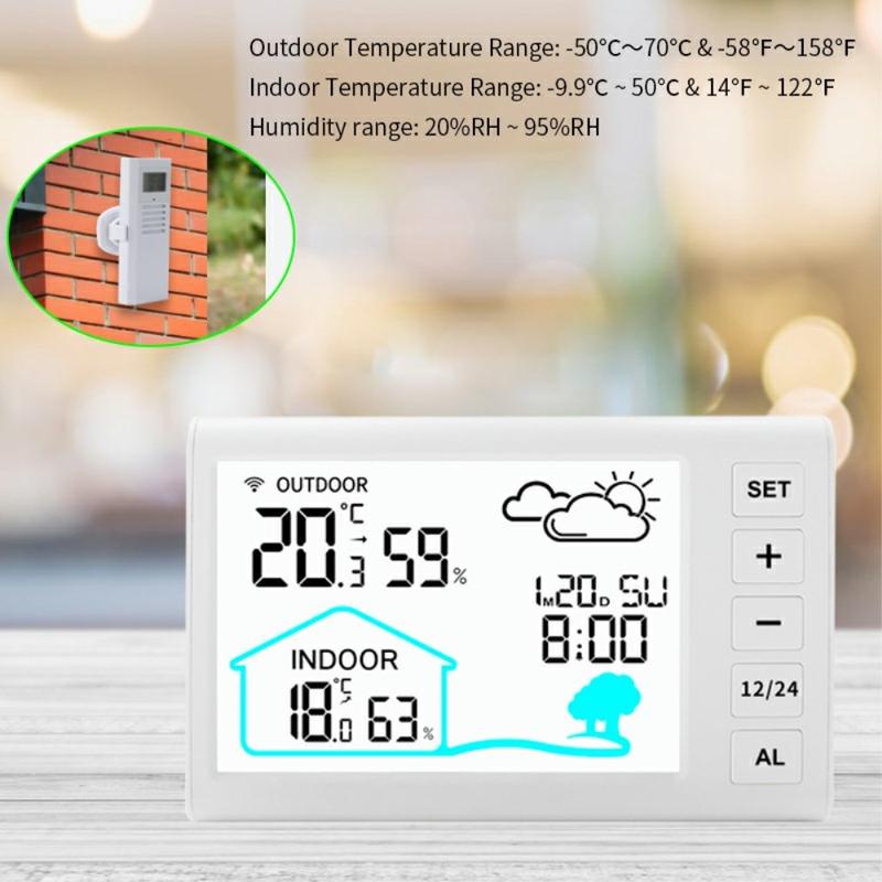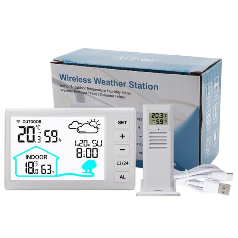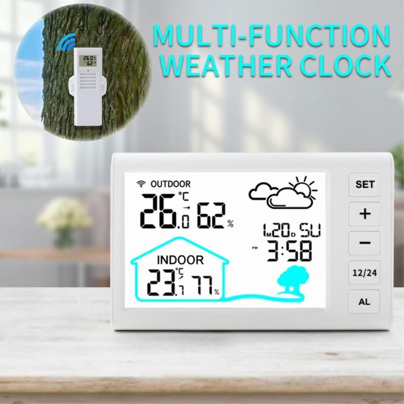 Estação meteorológica sem fios multifuncional para monitorização interior e exterior com relógio despertador