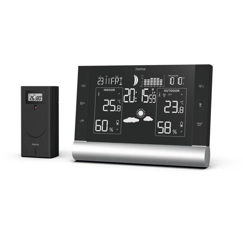 Estação meteorológica Hama Black Line Plus com despertador, aviso de condições extremas - previsão meteorológica exacta