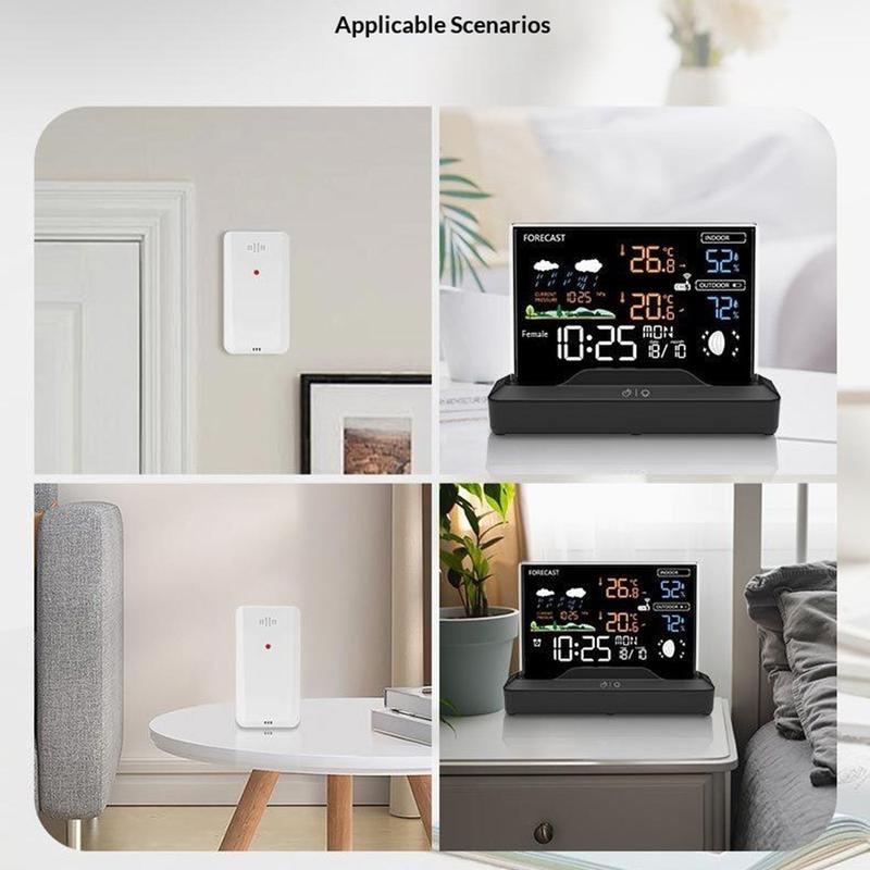 Esta estação meteorológica sem fios é uma excelente aquisição para quem procura uma forma prática de verificar a hora, o conforto interior e as condições exteriores num único local. Combina um ecrã a cores nítido, suporte para sensores multizona, previsão meteorológica, leituras do barómetro e funcionalidade de despertador num único dispositivo compacto. Isto torna-a uma escolha inteligente para casas, escritórios, cozinhas, quartos e para quem gosta de ter informações úteis do dia-a-dia facilmente visíveis.