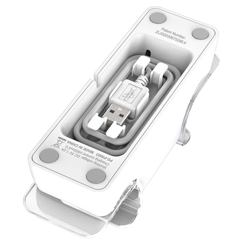 - Cabo de carregamento USB oculto, fácil de armazenar quando não estiver em uso