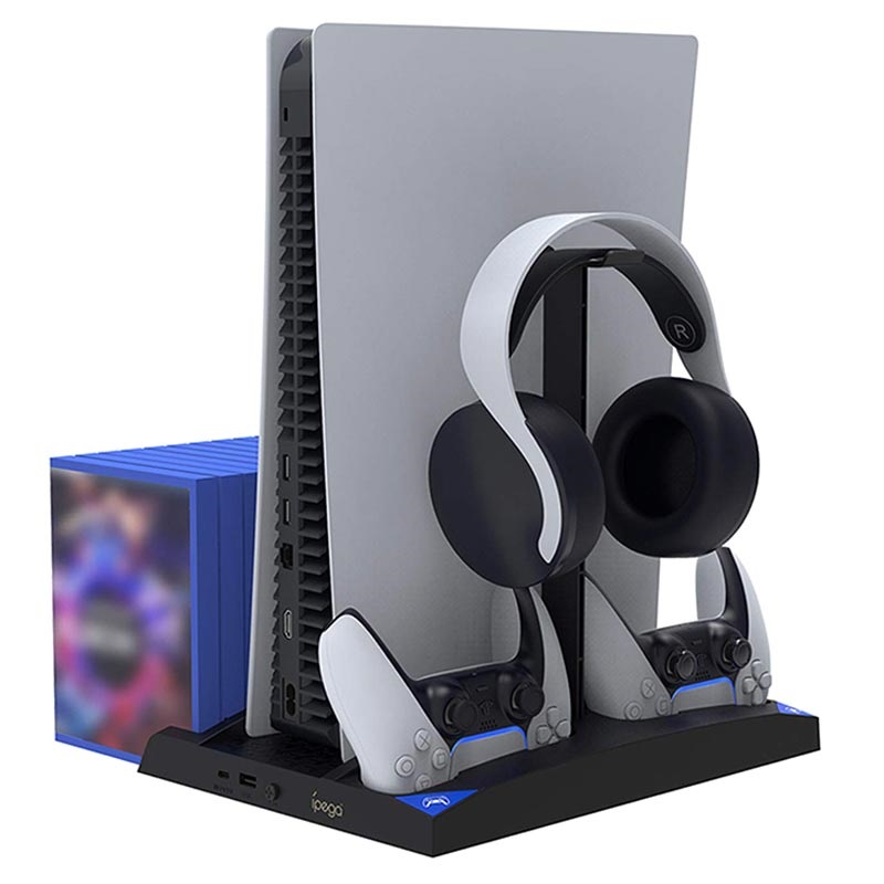 Não serve apenas para arrefecimento, mas também como carregador para comandos DualSense da Sony PlayStation 5, suporte para auscultadores, e para os seus jogos preferidos! Os indicadores laterais mostrarão o estado de carregamento dos seus comandos DualSense da Sony PlayStation 5. Encontre um local perfeito, e instale este suporte vertical iPega P5013 para a Sony PlayStation 5 em segundos!