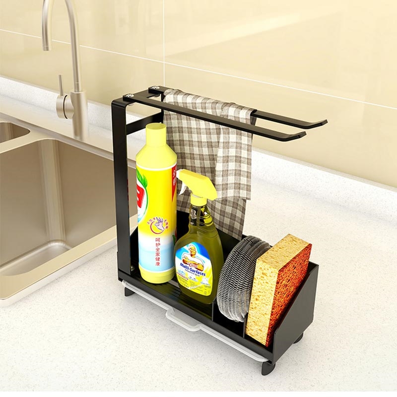 - Design multi-camadas para armazenamento organizado de esponjas, escovas de cozinha, sabão e esfregões