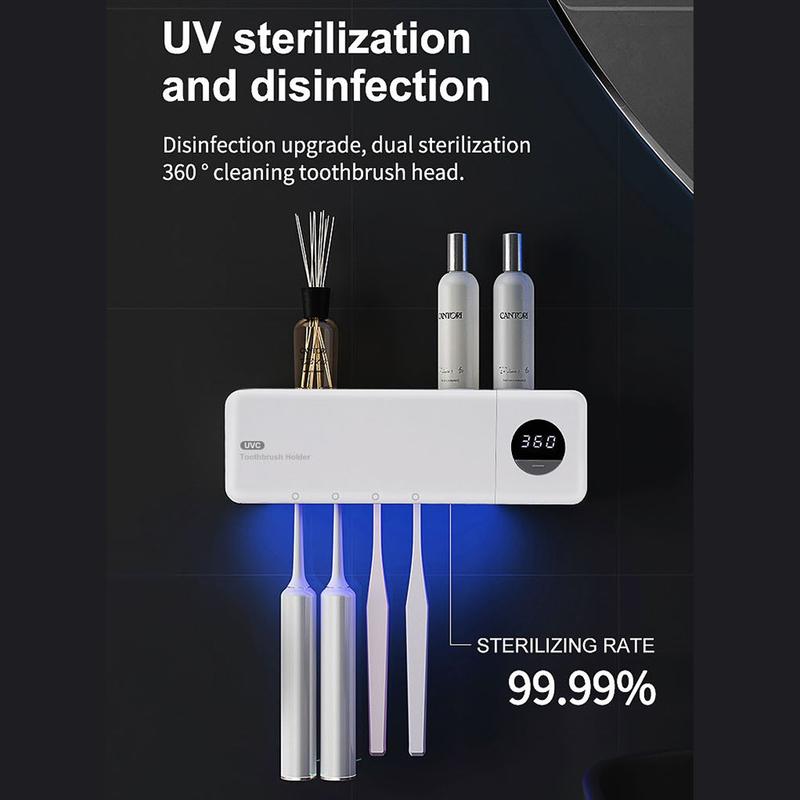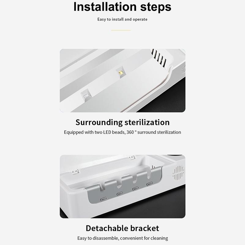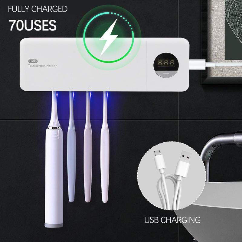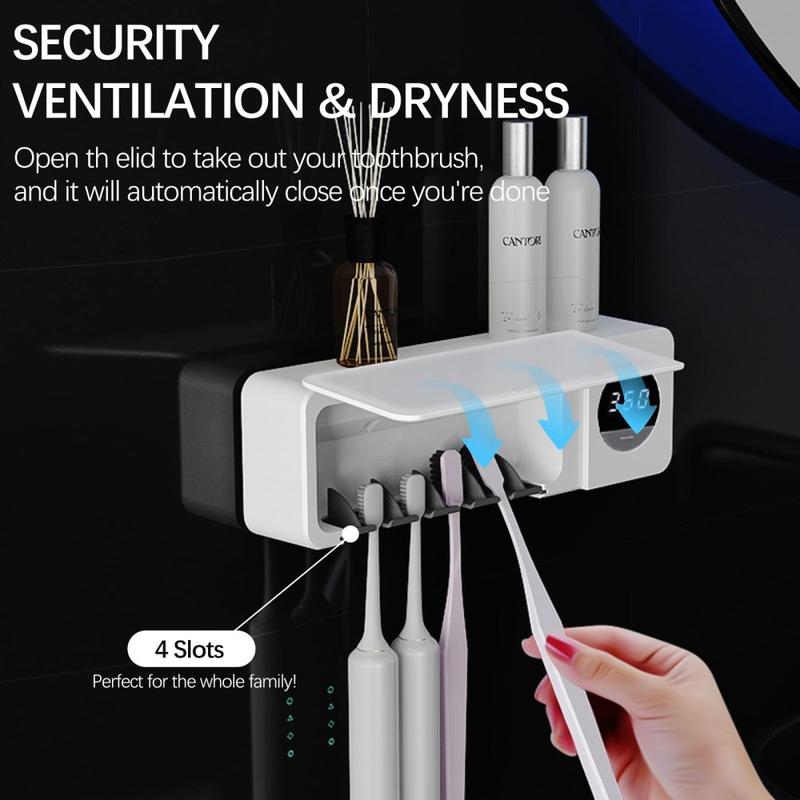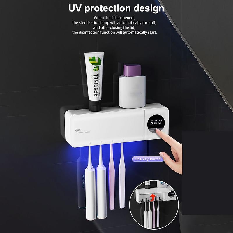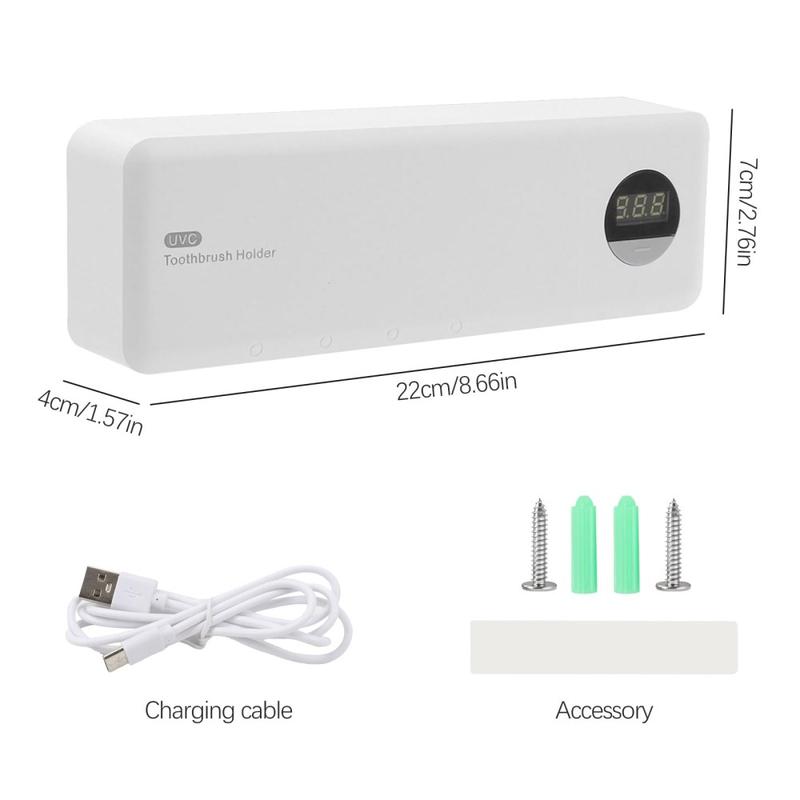 Desinfetante para escovas de dentes Esterilizador UV - Suporte de parede para escovas de dentes com sensor automático e ecrã digital
