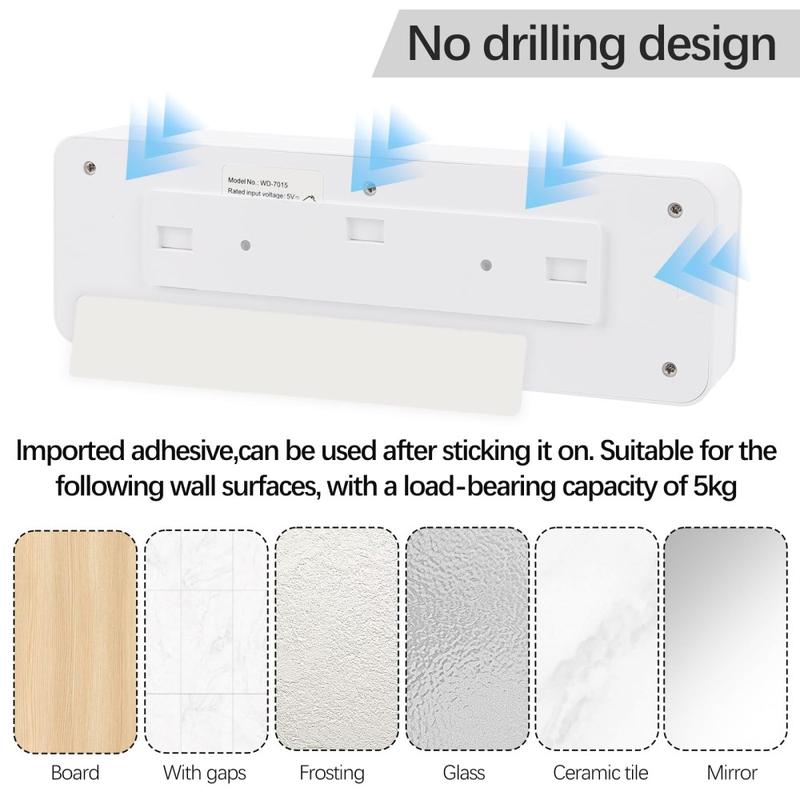 - Design de montagem na parede - A instalação fácil com adesivo poupa espaço, não requer perfuração e protege as paredes da casa de banho.