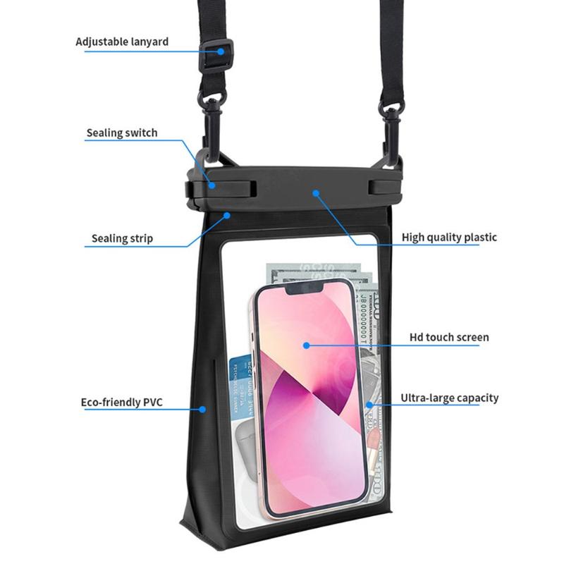 Com um selo extra para reforçar a vedação, vedação dupla e manter o seu telemóvel e itens secos e seguros em condições extremas. O fecho de fivela dupla em material ABS garante uma utilização a longo prazo para impedir a entrada de água, areia, neve e pó