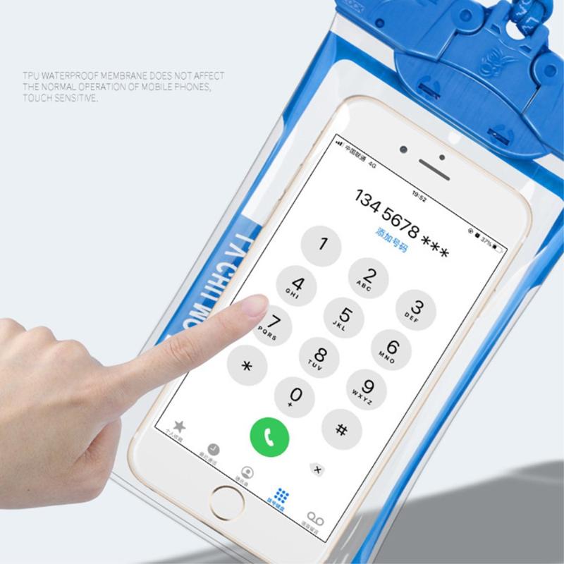 A bolsa impermeável para telemóvel é feita de TPU+ABS  material que garante um toque suave no ecrã