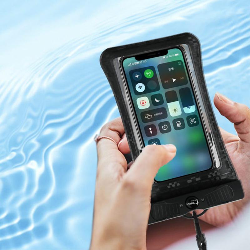 A bolsa para telemóvel à prova de água é feita de material ABS+PVC com padrão axadrezado, elegante e prático