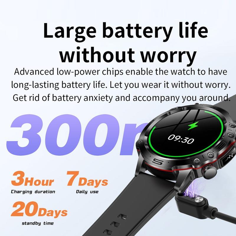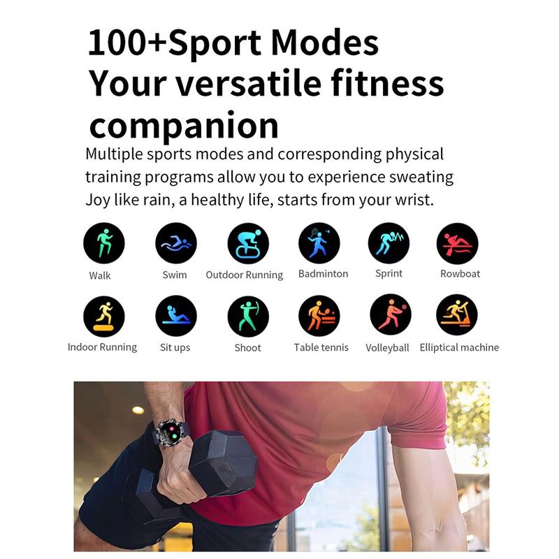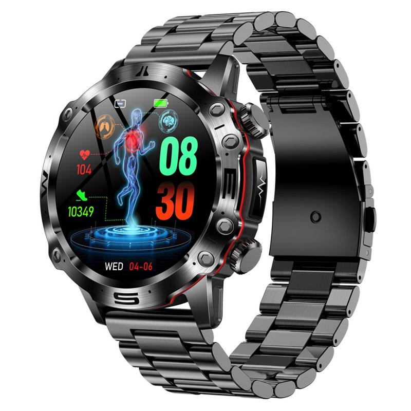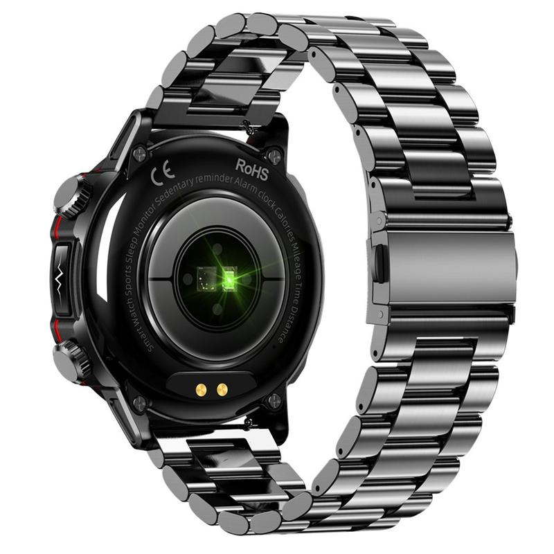 - Design duradouro: Construído com uma bracelete de aço e uma classificação IP68 à prova de água, este smartwatch foi concebido para resistir ao uso diário e a várias condições ambientais.