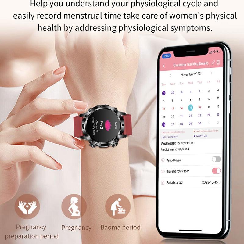 - Monitorização abrangente da saúde: Acompanhe a sua saúde com funcionalidades que incluem eletrocardiograma ECG, medição não invasiva da glicemia, análise da composição sanguínea (ácido úrico e funções lipídicas no sangue), medição da gordura corporal IMC, análise HRV, diagnósticos médicos IA, acompanhamento menstrual, monitorização do ritmo cardíaco, acompanhamento do sono e muito mais.
