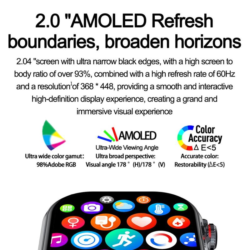 - Ecrã AMOLED vibrante de 2,04 polegadas: Desfrute de uma interface cristalina com um ecrã AMOLED de alta resolução, que oferece uma excelente visibilidade sob qualquer luz.