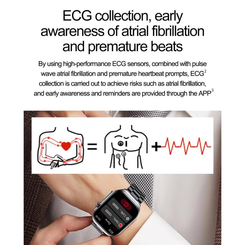 ET585 Smartwatch com ecrã AMOLED com ECG, chamada de emergência SOS, monitorização da saúde, bracelete em aço inoxidável