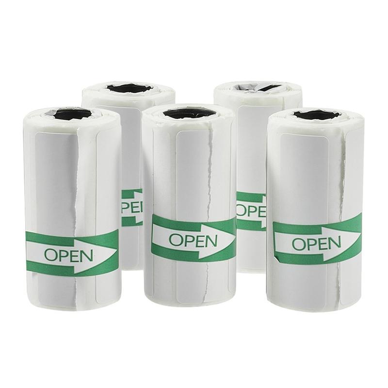 - A embalagem inclui 5 rolos, permitindo-lhe realizar tarefas de etiquetagem grandes ou múltiplas