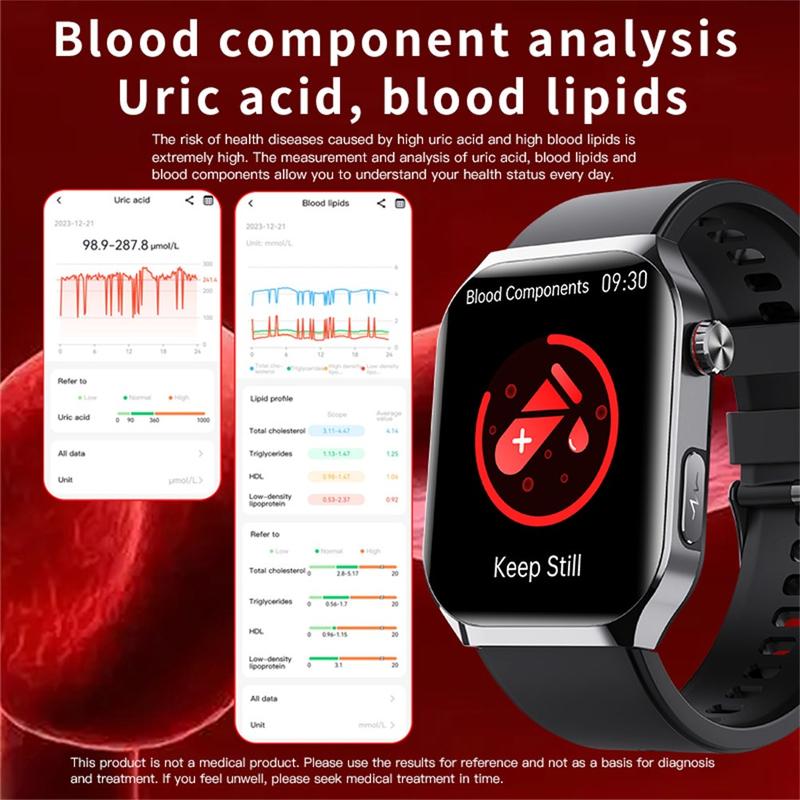 - Monitorização abrangente da saúde - ECG, relatório HRV, composição corporal, luz vermelha de oxigénio no sangue e avaliação não invasiva do açúcar no sangue.