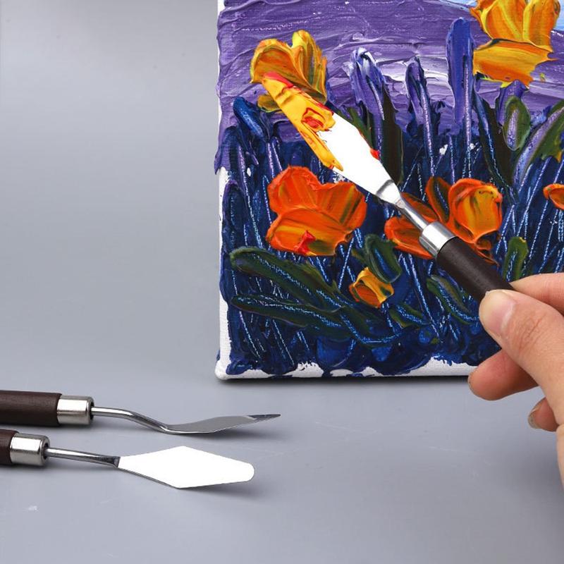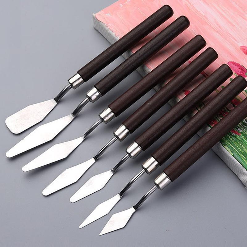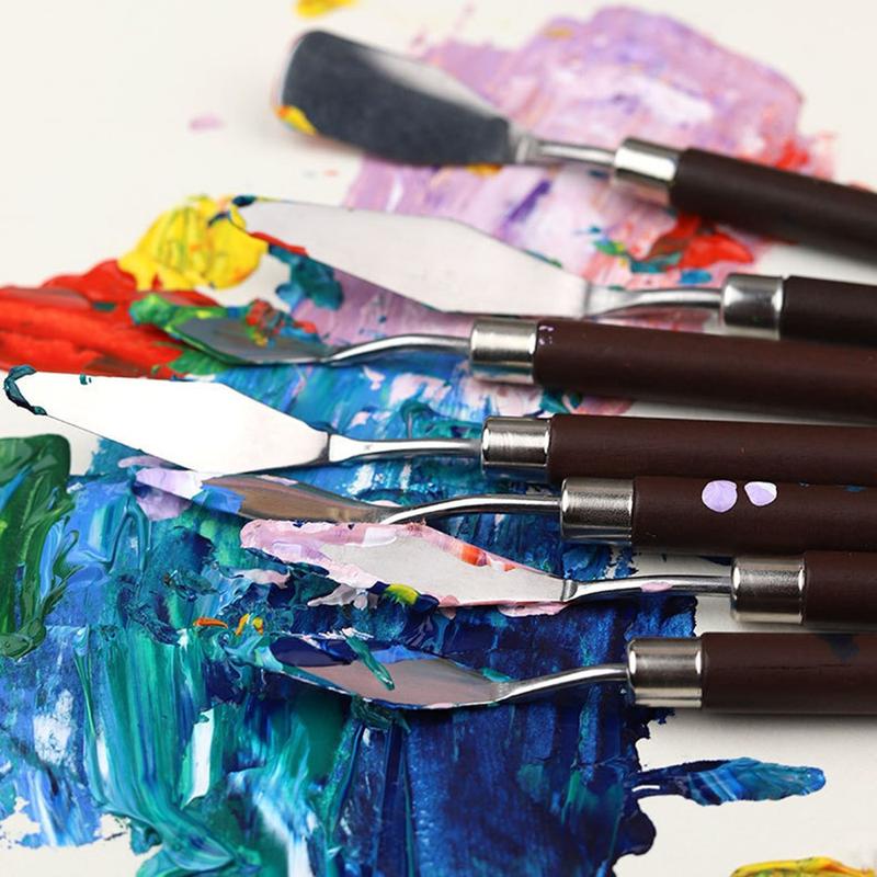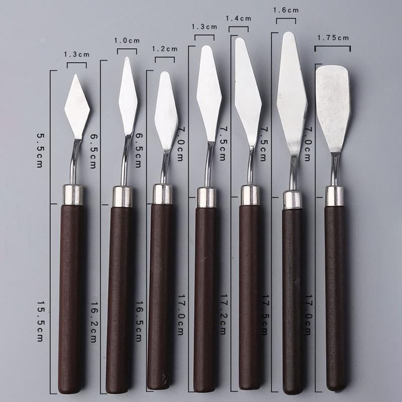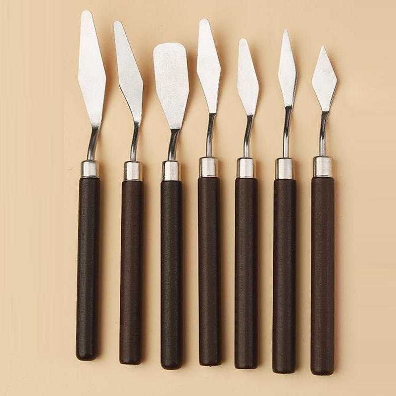 7 raspadores diferentes para pintura a óleo num só conjunto, fáceis de utilizar