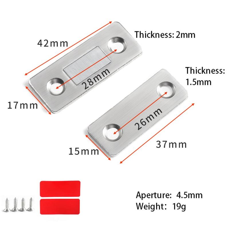 Este íman para portas de armários é suficientemente fino para ser ignorado, mas é suficientemente forte para manter fechadas as portas de armários, gavetas, armários, portas de correr e outras portas