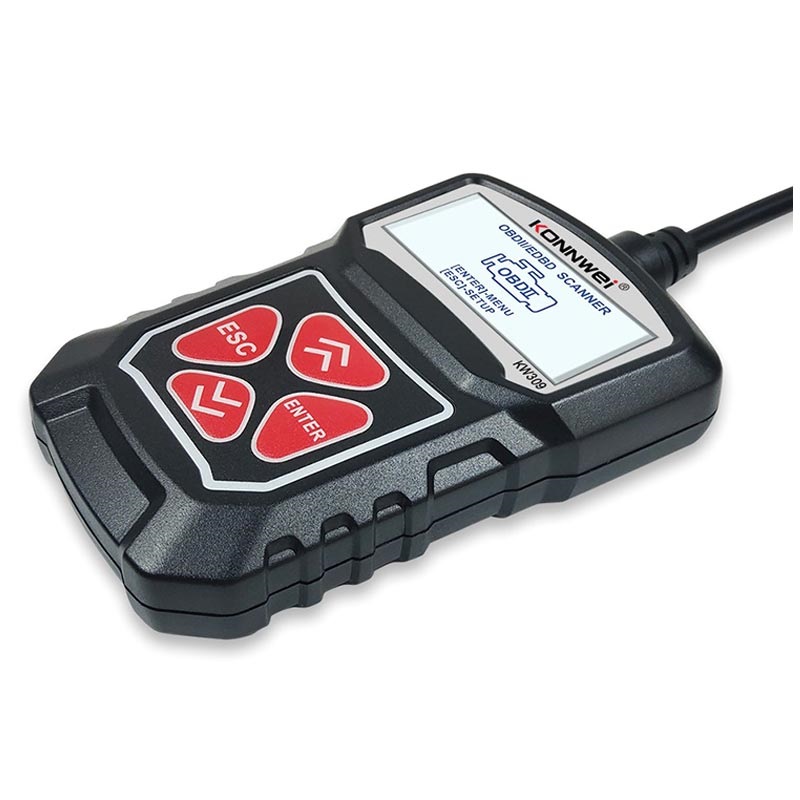 O scanner de diagnóstico de falhas Konnwei KW309 suporta todos os protocolos OBD-II para motores a gasolina e gasóleo. Foi projetado com um ecrã LCD de 2" e um altifalante para indicação visual e sonora. Simples de usar, não precisa de outras ferramentas - basta ligá-lo ao conector OBD do veículo. O scanner de problemas no carro Konnwei KW309 exibe códigos de erro e os seus significados, graças ao seu banco de dados.