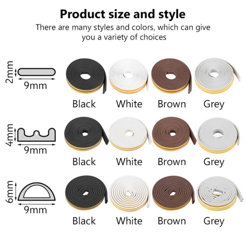 Fita auto-adesiva de EPDM para vedação de portas e janelas - Anti-colisão, para-vento e redução de ruído - 5m, 9x6mm