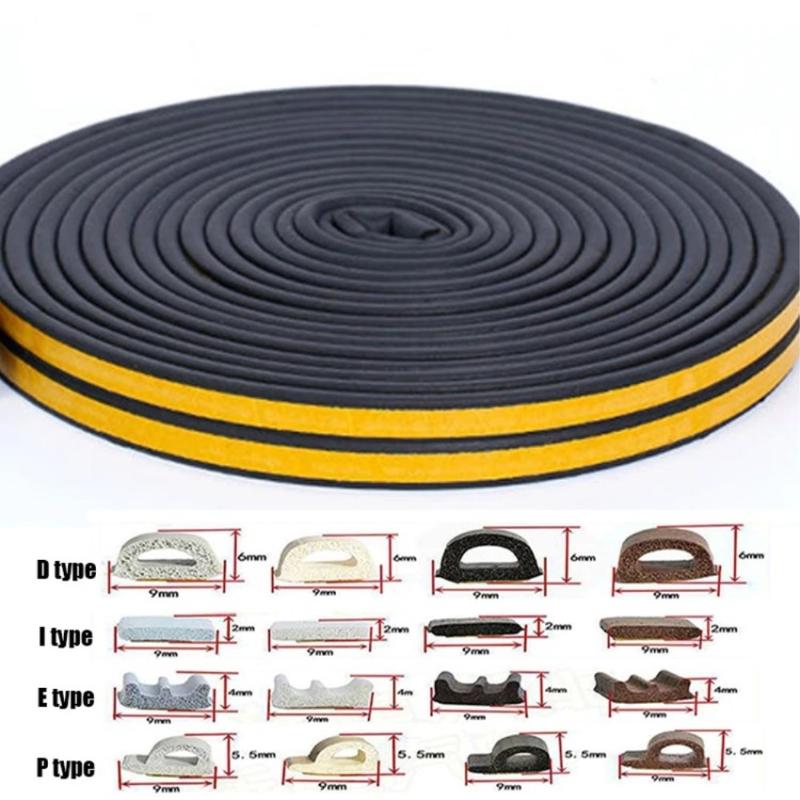 Fita auto-adesiva de EPDM para vedação de portas e janelas - Anti-colisão, para-vento e redução de ruído - 5m, 9x2mm