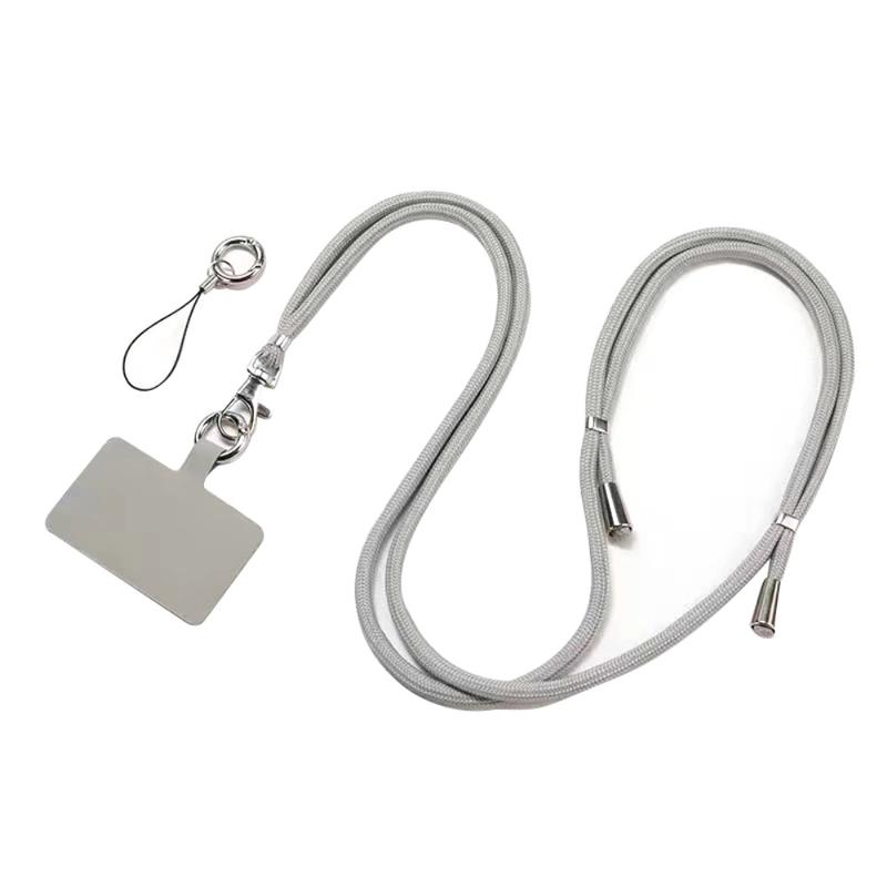 Fita para telemóvel em poliéster Fita ajustável de 5 mm para o pescoço Fita para telemóvel com fecho para o corpo - Cinzento