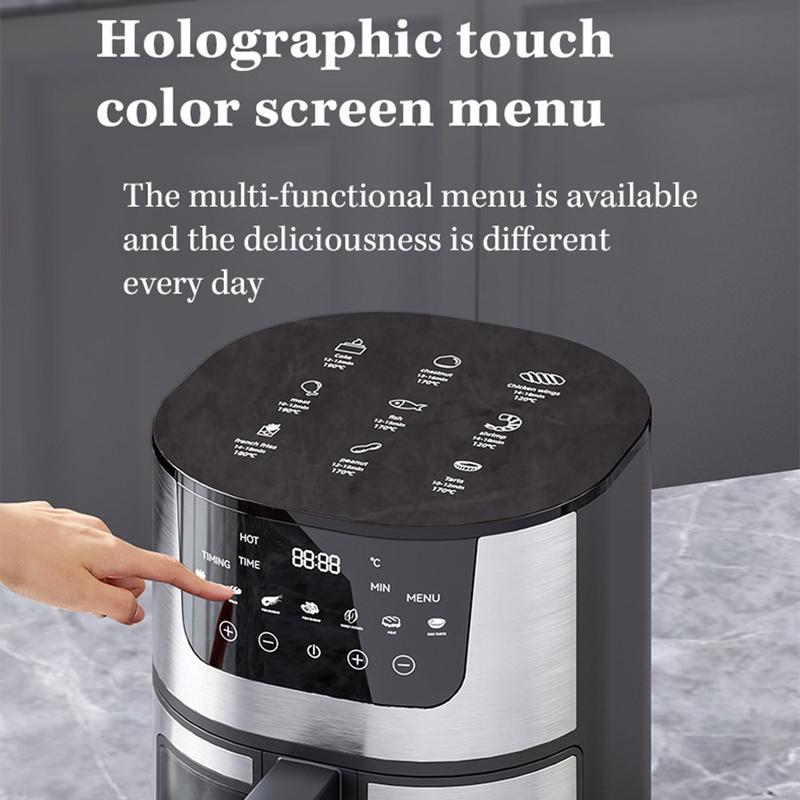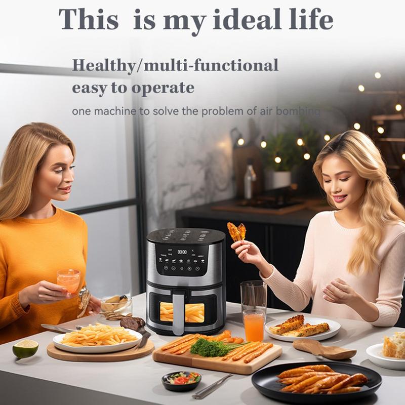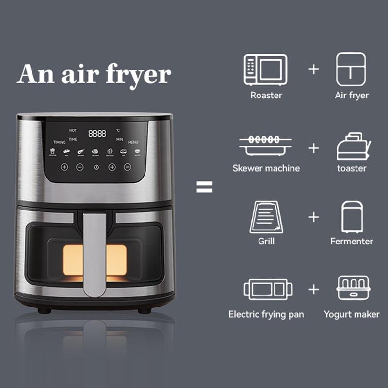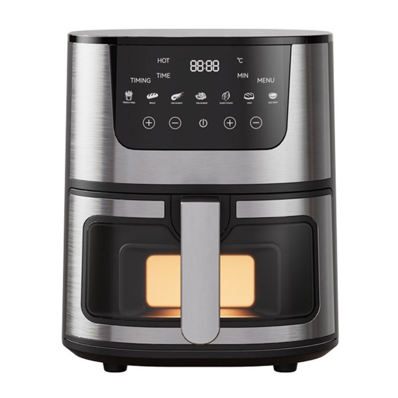 Fritadeira de ar em aço inoxidável multifunções de 7 l de grande capacidade e 1500 W com janela de visualização - ficha UE