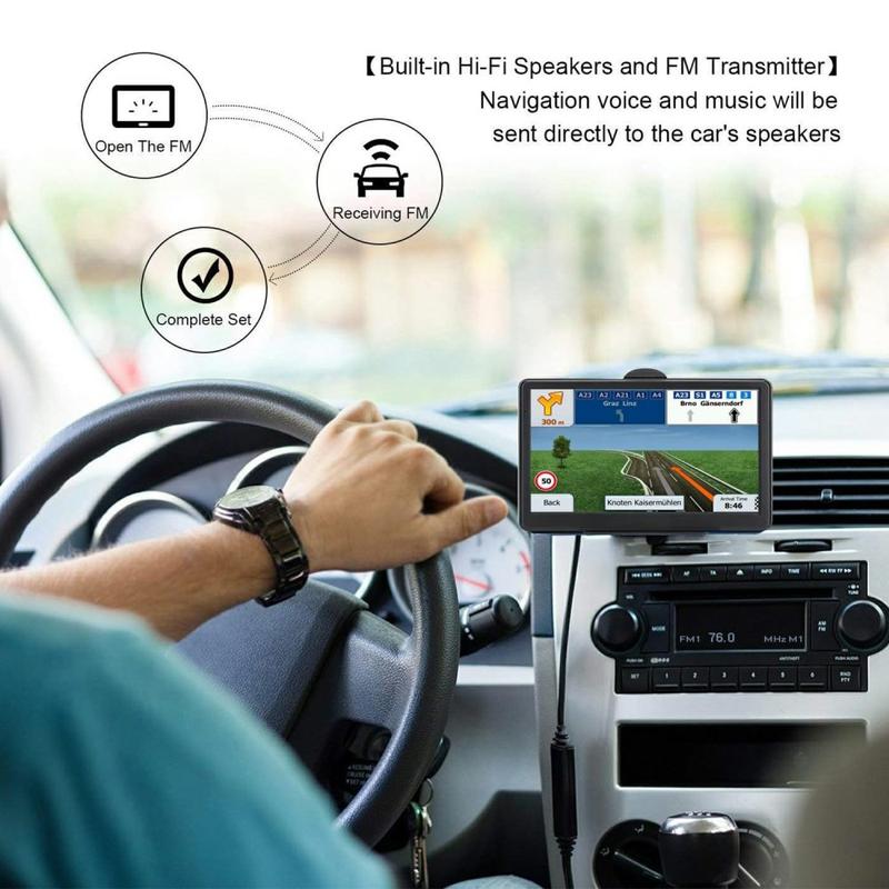 - Transmissor FM de banda completa: Saída de áudio deste navegador para o sistema de som do seu carro, o transmissor FM (76.0MHz -108MHz) transmite o som do GPS para o carro, não para o rádio FM
