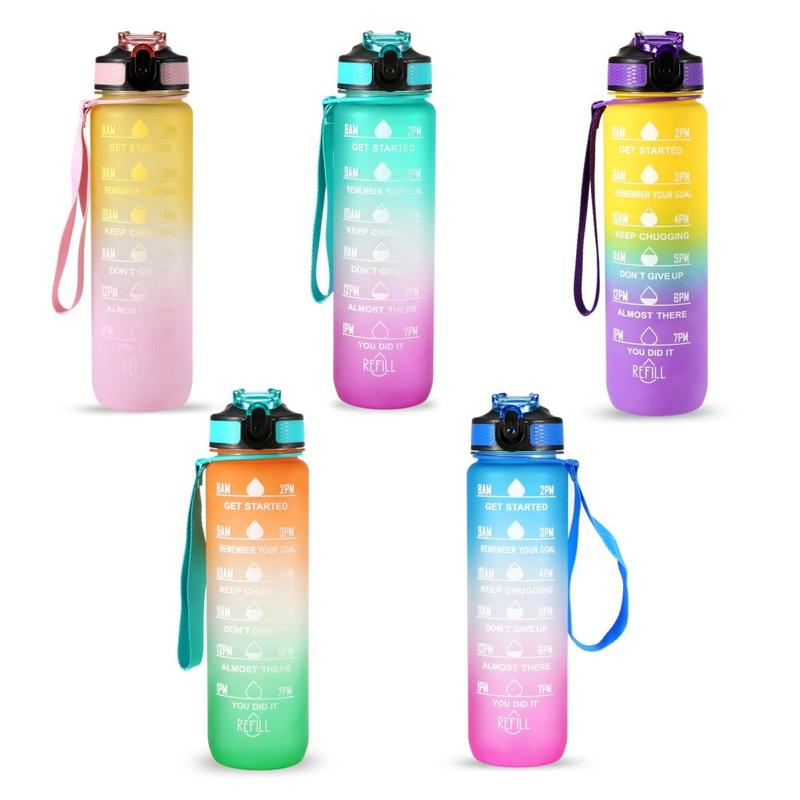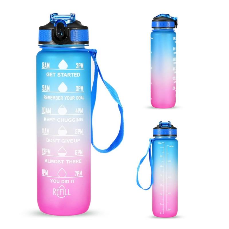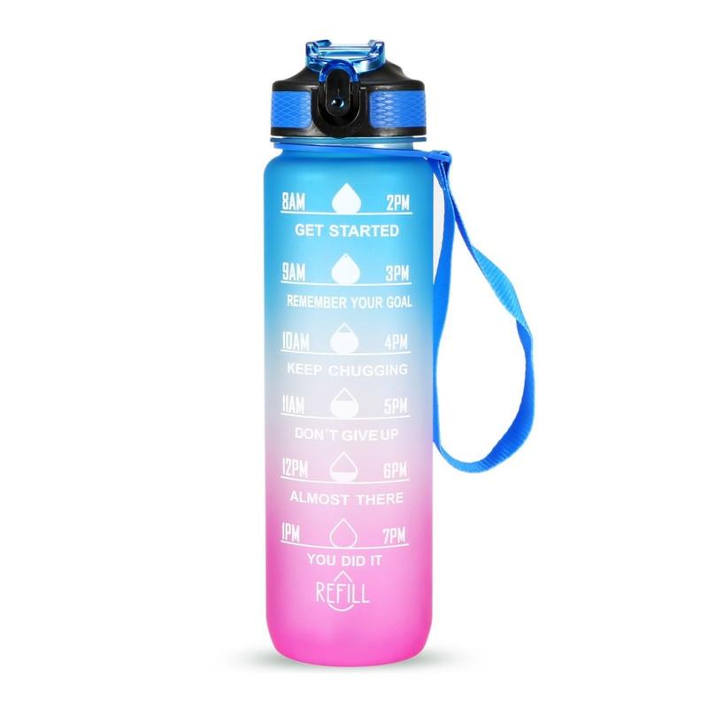 Esta garrafa de água de 1L foi concebida com um marcador de tempo e citações inspiradoras, que o ajudam a manter-se motivado para beber água suficiente ao longo do dia. Perfeita para treinos, corrida, caminhadas, ciclismo, ciclismo, campismo, ioga ou qualquer outro desporto em casa, no ginásio, no escritório ou ao ar livre.