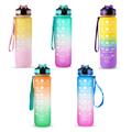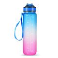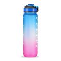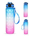 Garrafa de água desportiva de 1L com marcador de tempo Garrafa de água à prova de fugas Chaleira para escritório Escola Campismo (sem BPA) - Azul/Púrpura