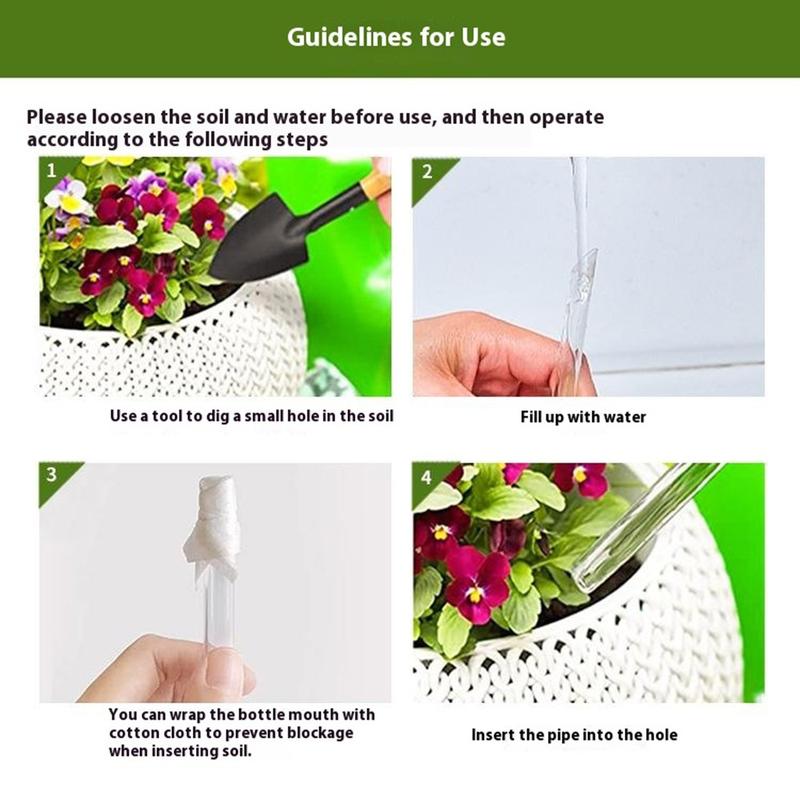 O caule fino liberta a água gradualmente, permitindo que o solo absorva a humidade a um ritmo natural. Este fluxo controlado apoia o desenvolvimento normal das raízes e ajuda a evitar a rega excessiva, que pode ser prejudicial para muitas plantas.