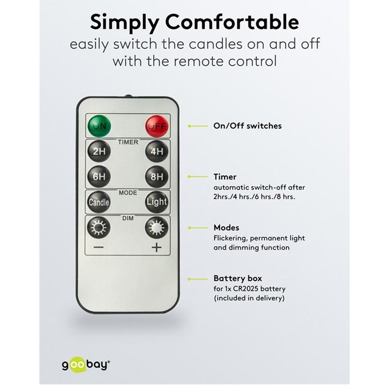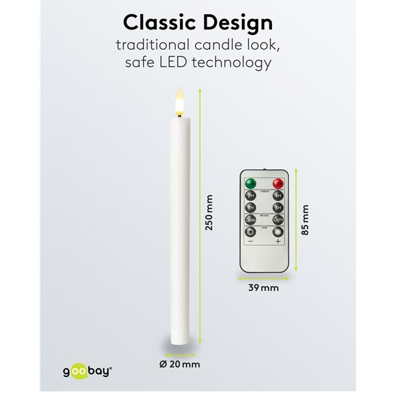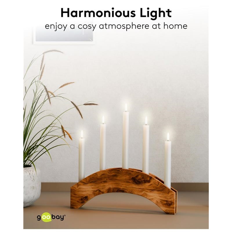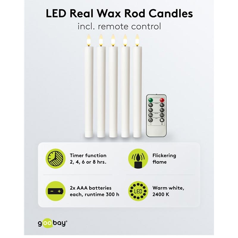 Goobay Conjunto de 5 velas cónicas de cera real LED - chama 3D, controlo remoto, temporizador, regulável, branco quente 2400 K