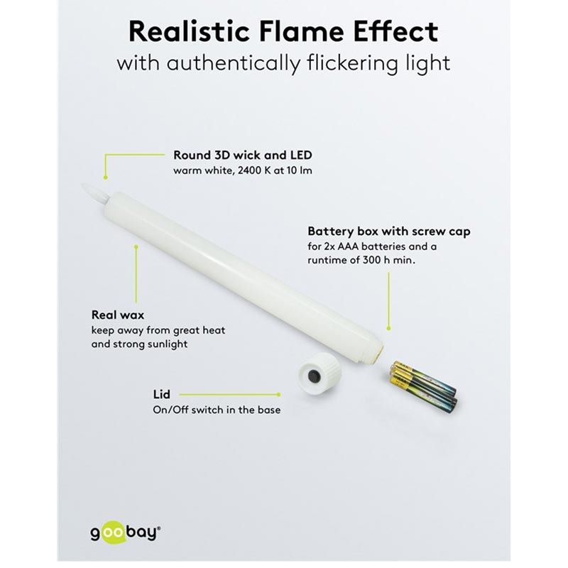 - As velas LED de cera verdadeira têm um aspeto e toque autênticos, mas devem ser mantidas afastadas da luz solar forte para evitar que amoleçam.