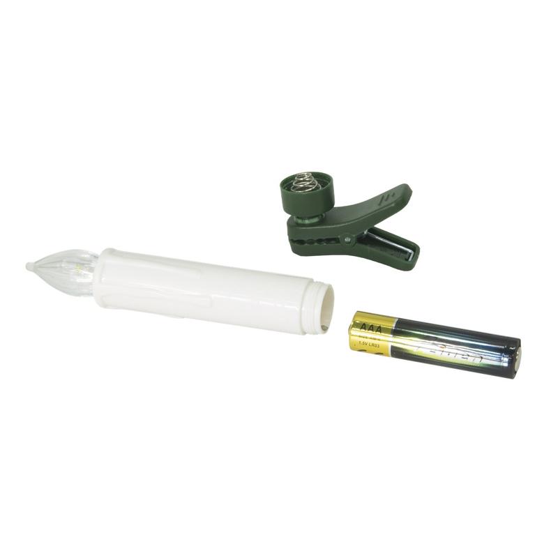 - Pilhas: Vela - 1× AAA (não incluída), controlo remoto - 1× CR2025 (incluído)