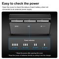 - Função de consulta de energia desconectada - Quando desconectada, abrir a tampa ou inserir uma bateria exibe automaticamente os níveis de energia.