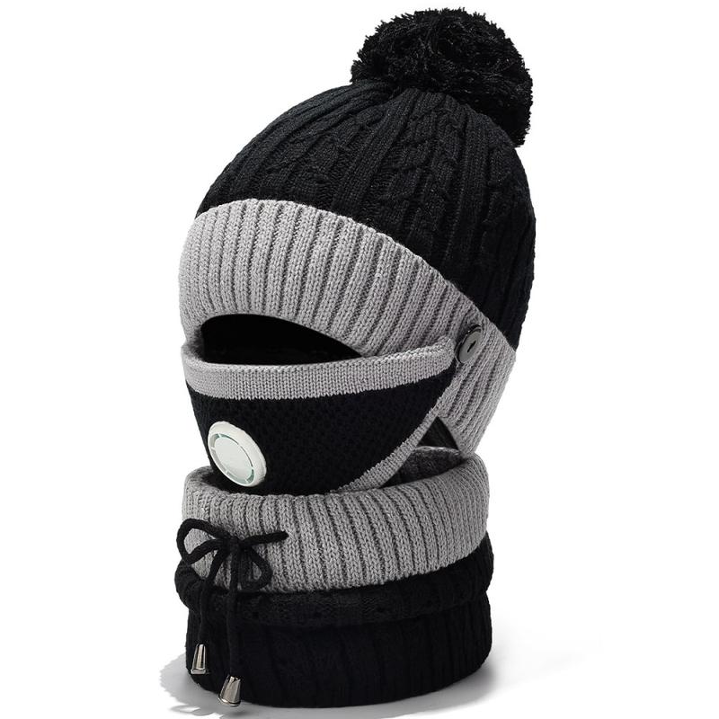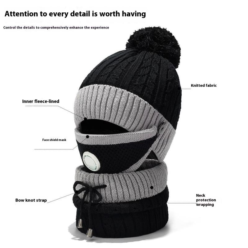 Gorro de malha à prova de vento de inverno com 3 peças, máscara facial e aquecedor de pescoço - Conjunto de proteção contra o frio forrado a velo