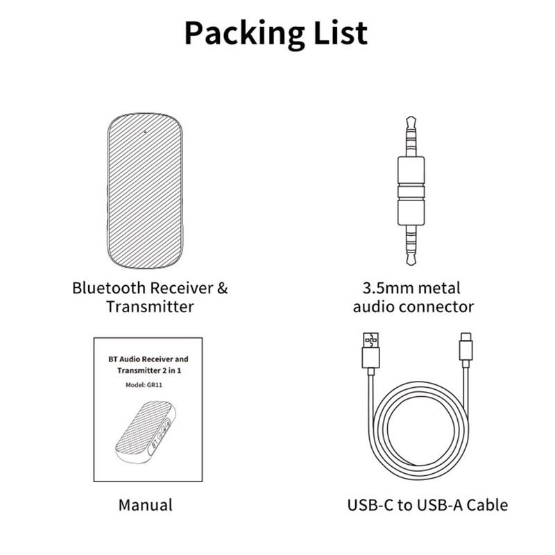 GR11-GT Adaptador sem fios Bluetooth 5.2 Recetor / Transmissor de áudio com chip Qualcomm