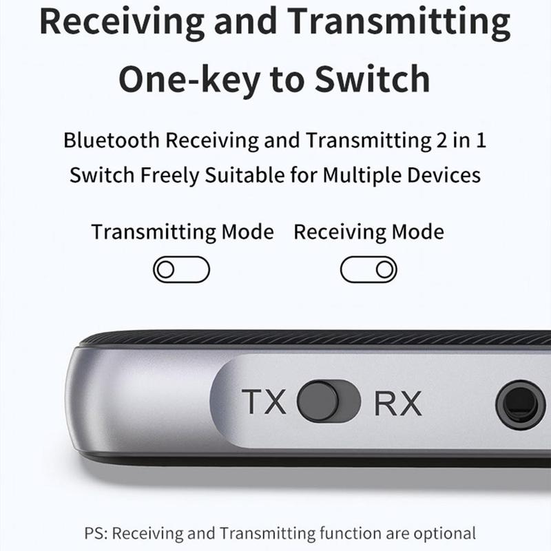 Conectividade de dois dispositivos: Capaz de ligar dois dispositivos simultaneamente nos modos RX (recetor) e TX (transmissor), tornando-o versátil para várias experiências de áudio