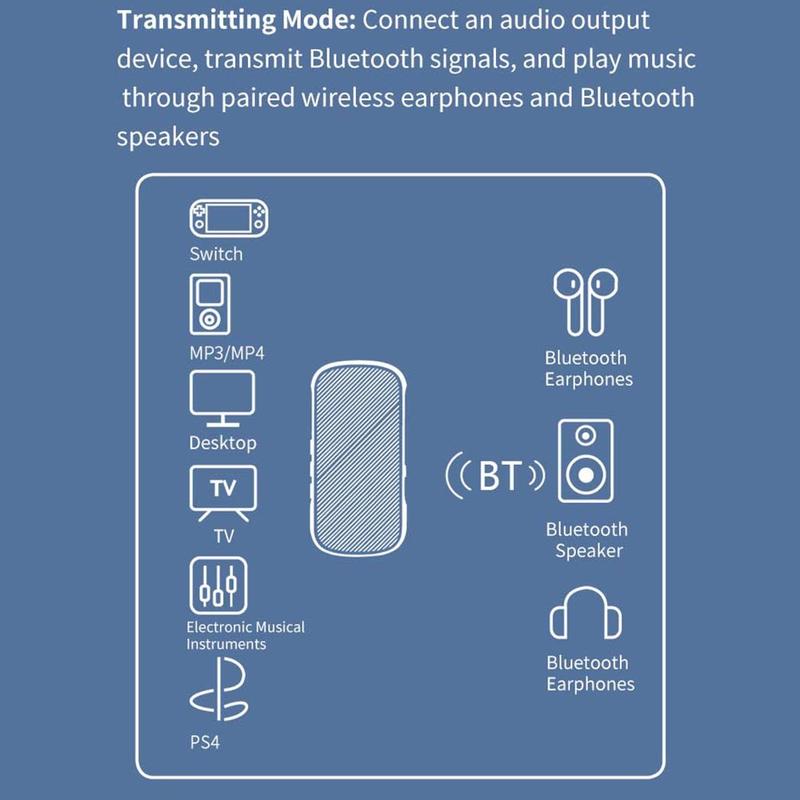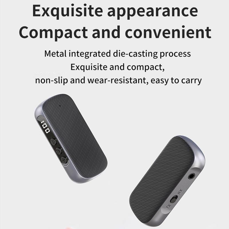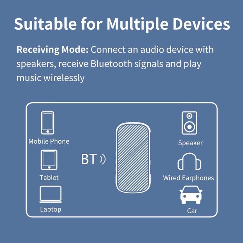 Tecnologia Bluetooth 5.2: Utiliza a versão mais recente do Bluetooth 5.2 para uma conetividade perfeita, permitindo que o dispositivo emparelhe com telemóveis, leitores de MP3, tablets, etc., e converta sistemas de som de automóveis antigos, sistemas de som domésticos ou auscultadores com fios de 3,5 mm em sistemas sem fios