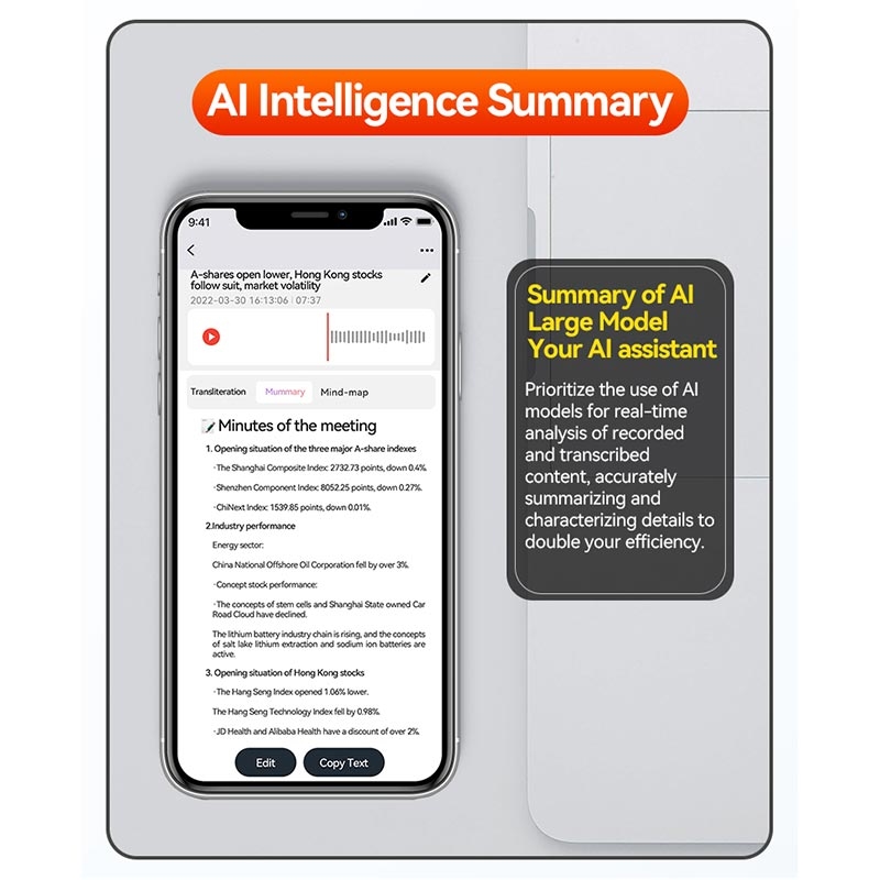 O Gravador de Voz Digital Inteligente Q70A foi concebido para profissionais, estudantes e profissionais criativos que necessitam de uma gravação de áudio fiável e de alta qualidade, bem como de funcionalidades avançadas de IA num único dispositivo compacto. Com captura de som cristalina, fixação magnética e transcrição em tempo real em 188 línguas, este gravador estabelece um novo padrão de conveniência e eficiência.