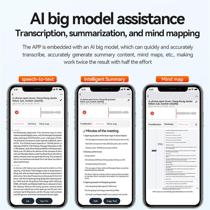 - Transcrição com tecnologia de IA: Conecte-se ao AIREC-APP via Bluetooth para transcrever e traduzir o discurso em 188 idiomas, alimentado por ChatGPT.