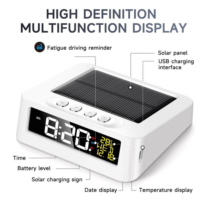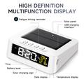 GS-301 Despertador digital LED alimentado por energia solar com visor de temperatura e lembrete de fadiga ao volante