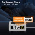 - Despertador de cabeceira com dois alarmes para diferentes rotinas