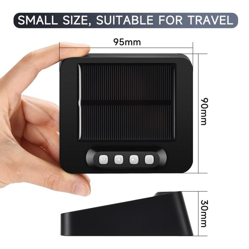 O despertador digital LED alimentado por energia solar GS-301 é um relógio compacto e fácil de transportar que mostra a hora, a data, o dia da semana e a temperatura num ecrã LED nítido de alta definição. Suporta alimentação dupla (carregamento solar e carregamento USB tipo C) para uma utilização fiável em diferentes ambientes, desde o carro até à mesa de cabeceira ou ao parque de campismo. Com dois alarmes, alternância entre o formato de 12/24 horas, snooze de 5 minutos e um lembrete integrado para condução em estado de fadiga, é uma escolha inteligente para as rotinas diárias e viagens longas.